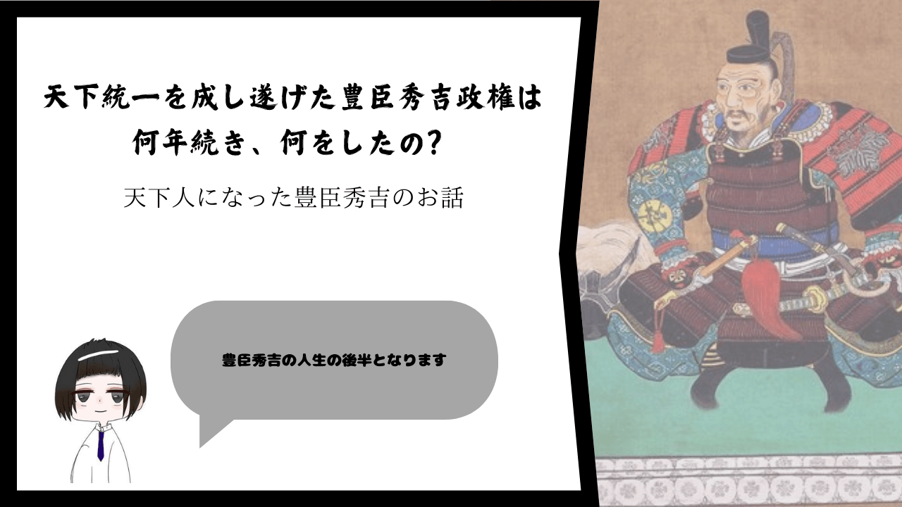 では今回は、前回お伝えできなかった、豊臣秀吉が天下人になった後のお話をしていきます。